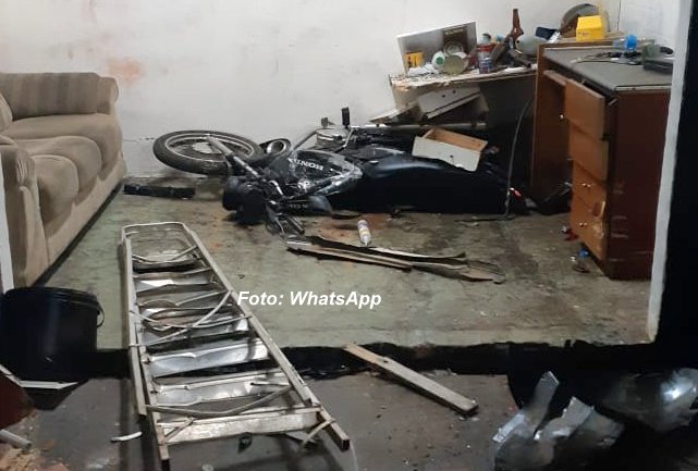 Mas, no local constataram que o condutor de uma saveiro tinha invadido o local, danificando o portão e, em seguida, passou a usar o próprio veículo para destruir tudo que via pela frente, inclusive uma motocicleta.
