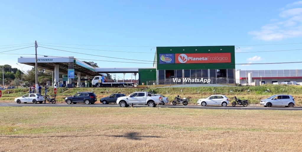 Por volta das 15h foi disponibilizado abastecimento de diesel e gasolina no Posto Ecológico, resultando em uma grande fila de veículos na rodovia SP-294.