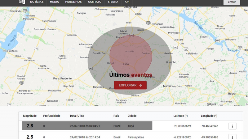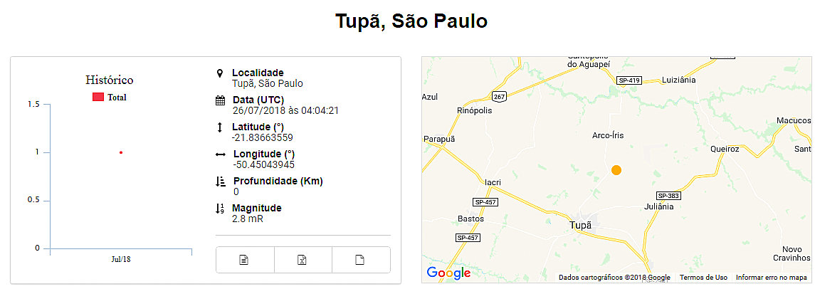 Informações técnicas sobre o abalo sísmico na região.