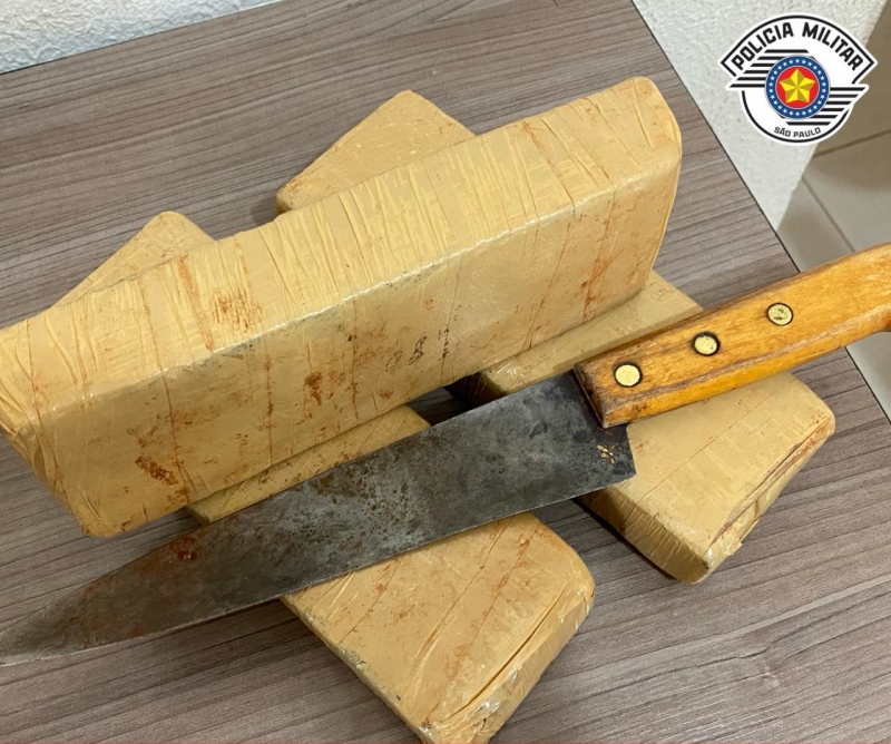 Os policiais militares surpreenderam uma motocicleta estacionada e decidiram apurar o que estava acontecendo. Nesse instante, os patrulheiros surpreenderam o suspeito que saia do mato portando uma mochila acompanhado por uma usuária de entorpecentes. Dentro da mochila estavam os tijolos de maconha que pesaram dois quilos e uma faca.