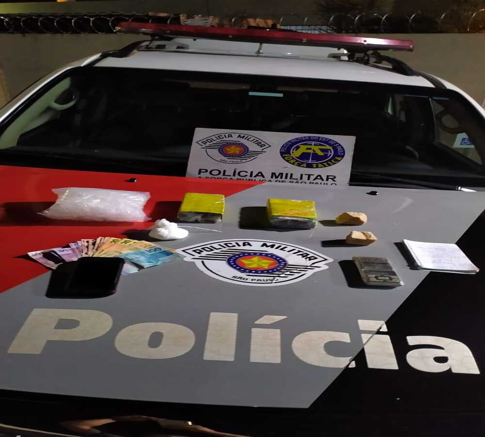 A terceira pessoa foi presa com crack e maconha próximo à praça da vila musa. O suspeito esboçou nervosismo incomum, mudou de direção e sentou na porta da igreja católica.