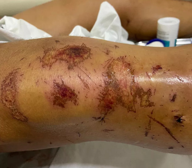 Segundo ele, apesar de não sentir nenhuma dor forte, a recuperação está sendo delicada, pois não consegue andar e precisa de auxílio para fazer tarefas do dia a dia, como comer e tomar banho.