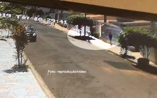 Câmera de segurança registra os criminosos fugindo a pé, após o assalto.
