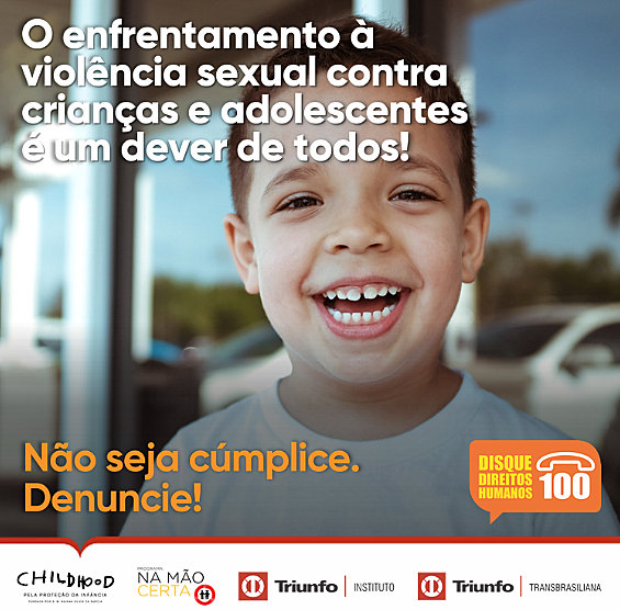 A Triunfo Transbrasiliana está engajada no enfrentamento ao abuso e à exploração sexual de crianças e adolescentes. Para chamar a atenção da sociedade sobre a importância de denunciar esta grave violação de direitos, a Concessionária reforça neste mês de agosto, com seus usuários e públicos de relacionamento, o canal de denúncias Disque 100. O objetivo é conscientizar, chamar a atenção para o tema e divulgar o telefone para denúncias.