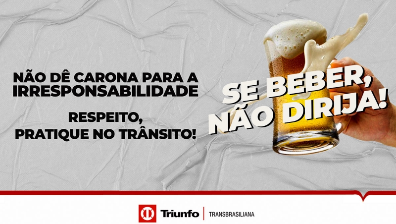 Diante desta realidade, a Triunfo Transbrasiliana reforça neste mês de julho a campanha “Não dê carona para a irresponsabilidade” para chamar a atenção dos usuários da BR-153/SP e da sociedade em geral sobre os perigos da combinação álcool e direção.