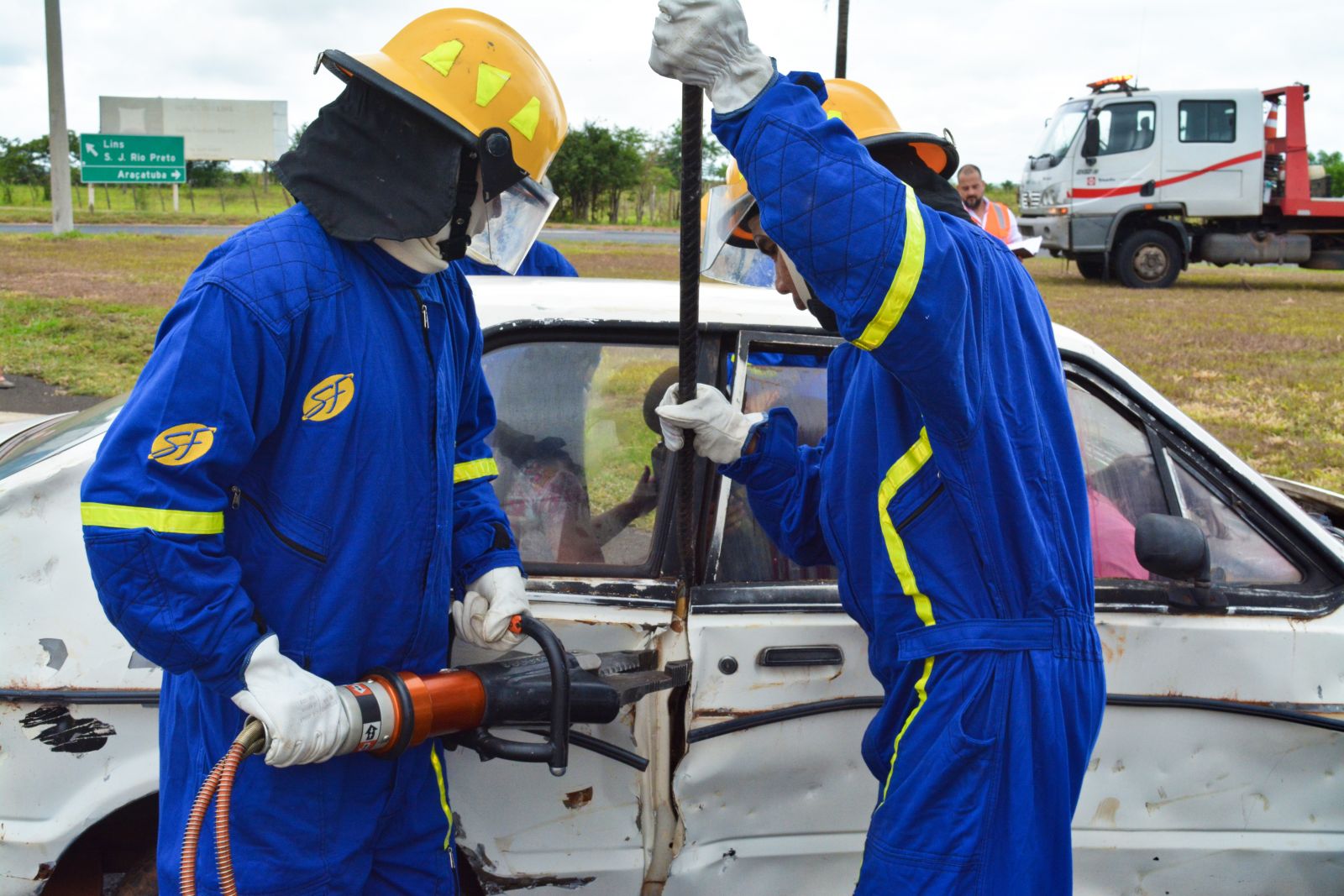 A Triunfo Transbrasiliana realizou na altura do Km 174 da BR-153, no trevo de acesso ao munícipio de Guaiçara, um simulado de acidente com produto perigoso. Com o objetivo de treinar as equipes operacionais da Concessionária e integrar instituições de atendimento à emergência na rodovia, o evento contou com a simulação de uma colisão transversal entre um veículo de passeio e um caminhão-tanque que transportava etanol.