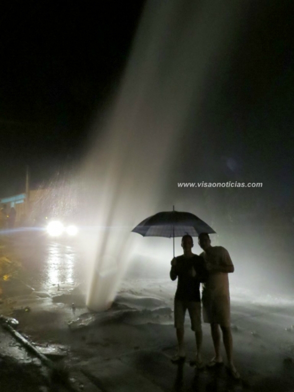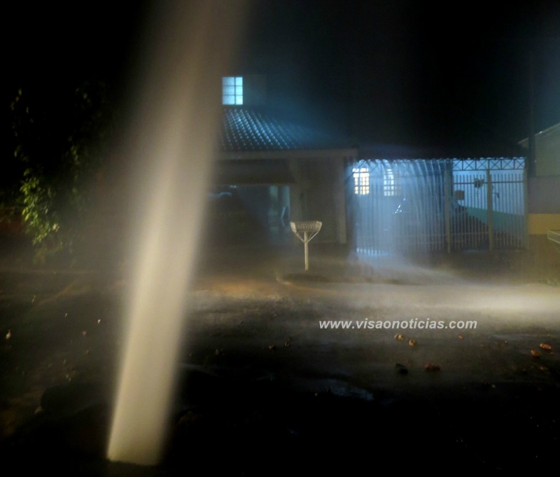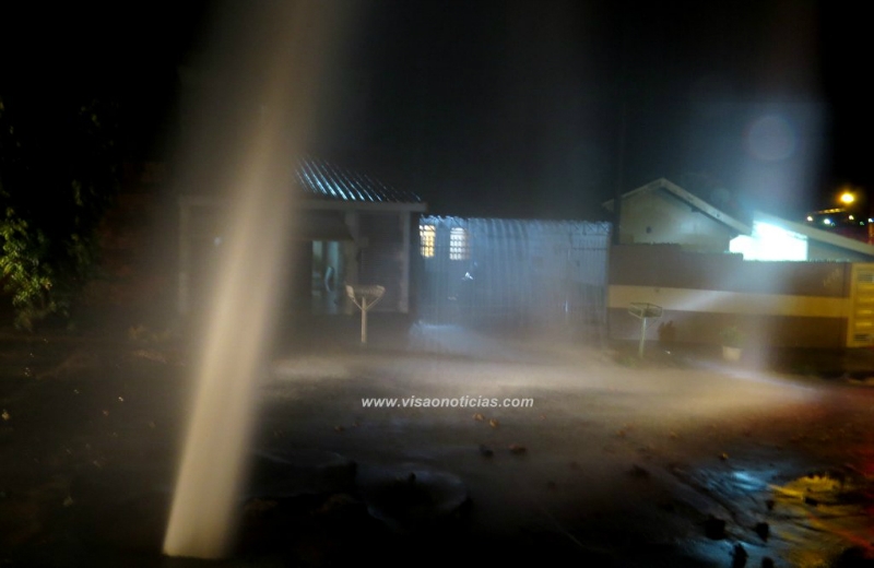 A tubulação se rompeu e, segundo os vizinhos, o jato de água chegou a mais de 20 metros de altura. Quem levou a pior foram os moradores de uma das casas que recebeu diretamente o jato de água, ficando praticamente impossível entrar ou sair do imóvel.