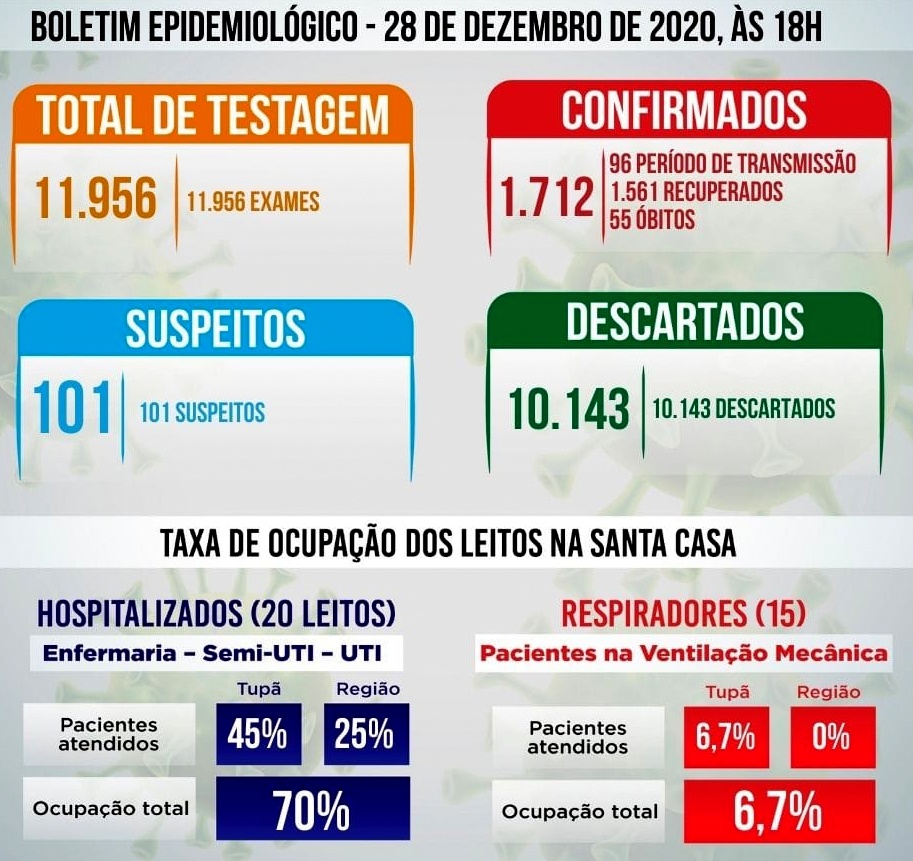 Tupã conta ainda com 45 casos suspeitos que estão aguardando resultado. Até o momento, 1.561 pacientes já se recuperaram da doença em Tupã.
