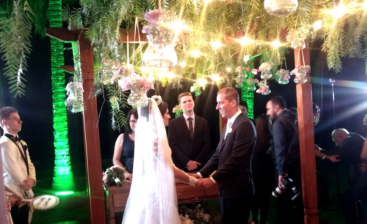 A Chácara Paradiso foi o local escolhido. Com um cenário típico de campo, o casamento foi realizado ao ar livre, aproveitando a beleza natural, com muito verde e vista previligiada. A noiva contou com uma equipe de profissionais para dar ainda mais luxo e glamour a festa.