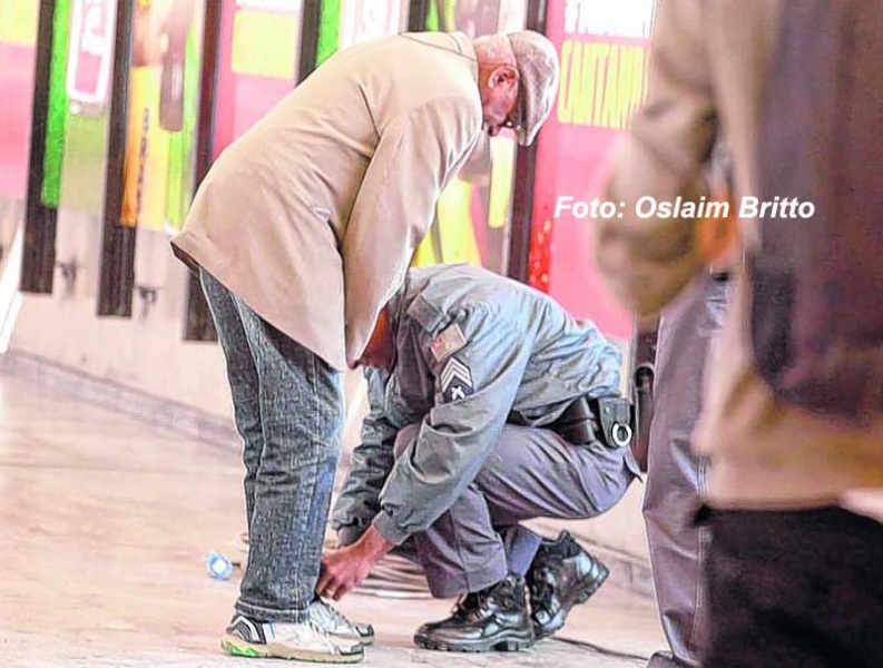 PM foi flagrado amarrando cadarço do tênis de um idoso em SP.