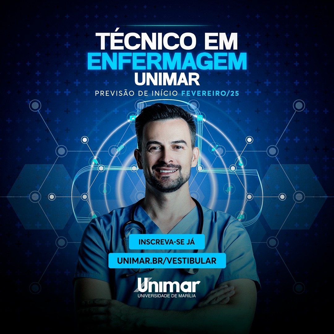 A Universidade de Marília (Unimar) está com inscrições abertas para o processo seletivo do curso Técnico em Enfermagem, que visa a formação de profissionais capacitados para atuar em diversos setores da saúde. O curso oferece aulas teóricas e práticas, ministradas por corpo docente atuante no mercado, em laboratórios com tecnologia avançada e com práticas no Hospital Beneficente Unimar (HBU).