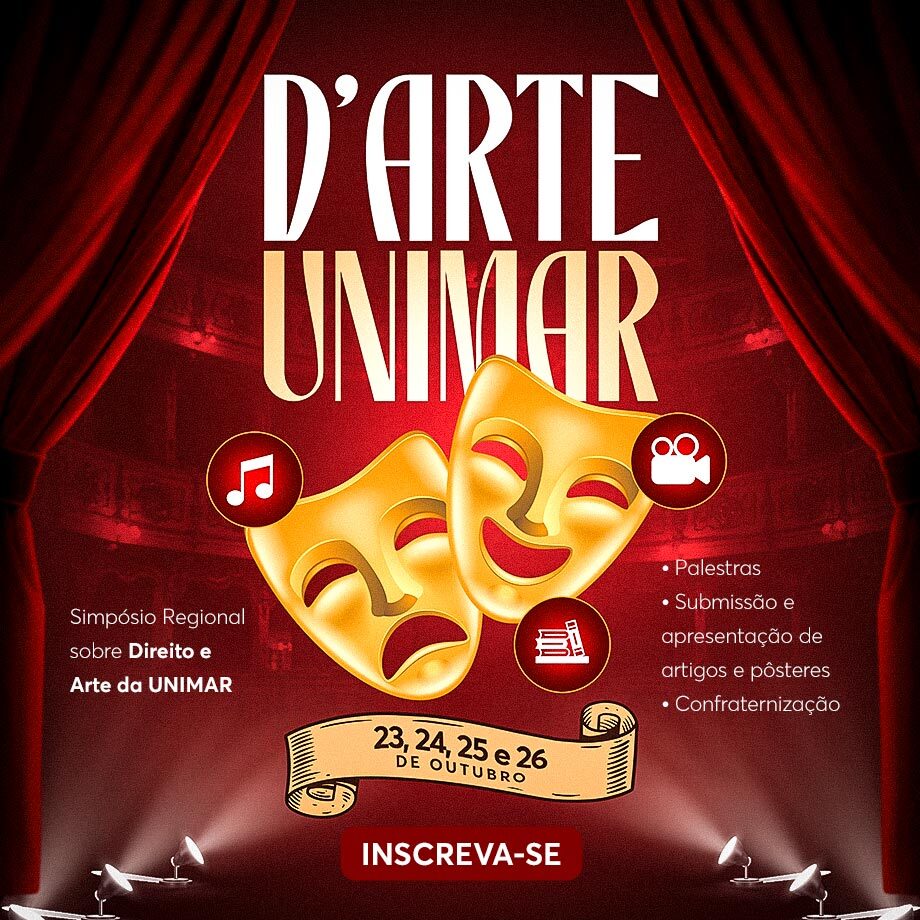 A Universidade de Marília (Unimar) está com inscrições abertas para a submissão de pôsteres e também artigos científicos para o ‘I Simpósio Regional sobre Direito e Arte’ (D'Arte), um evento inédito que está programado para acontecer entre os dias 23 a 26 de outubro.