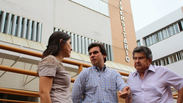 Reitor Márcio Mesquita Serva receberá o título (na foto ao lado da filha, Márcia; e do prefeito Vinicius).