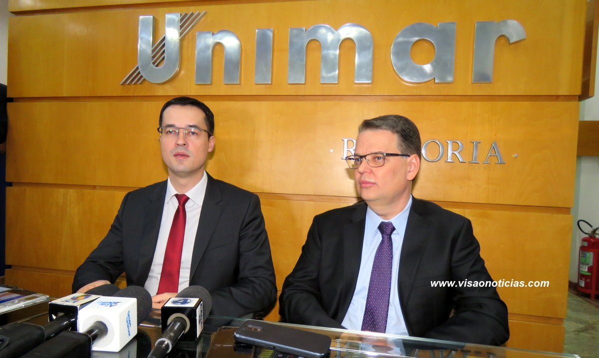 O procurador Deltan Dallagnol com a reitoria da Unimar, logo após a coletiva.