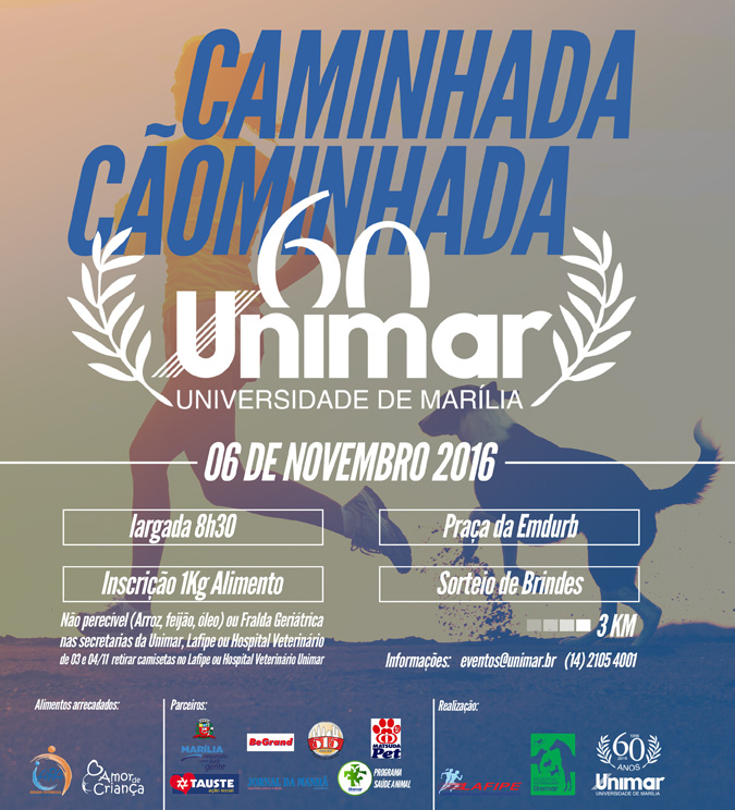 “A caminhada e cãominhada será uma grande oportunidade de integração entre ex-alunos, professores, comunidade, estudantes comemorando o desenvolvimento da Unimar e também da nossa cidade. Todos os participantes terão direito a camiseta comemorativa e ainda uma bela manhã de atividade física”, explica.