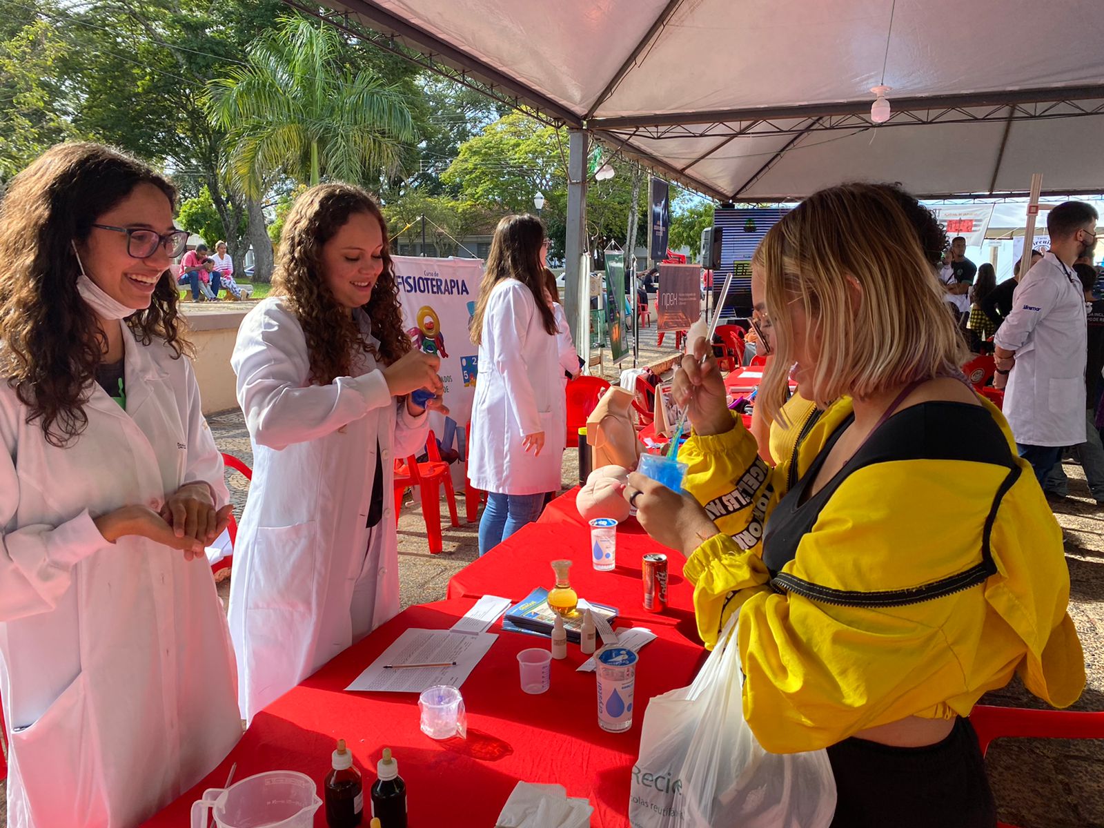 Os acadêmicos e docentes do curso de Fisioterapia realizaram a aferição de pressão arterial e orientações posturais.