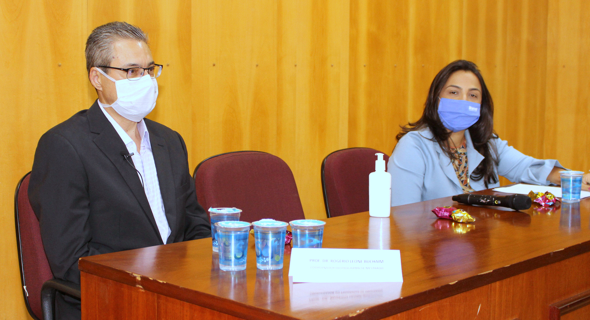 Coordenador do Mestrado Interdisciplinar da Área da Saúde, Dr. Rogério Buchaim, e a Pró-reitora de Pesquisa, Pós-graduação e Ação Comunitária da Unimar, Fernanda Mesquita Serva.