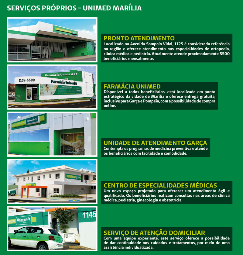 Todo o trabalho faz parte do que somos. Uma Organização séria, socialmente responsável, com ações voltadas ao fomento do cooperativismo. Suas conquistas só se tornaram possíveis graças ao empenho e dedicação de todas as equipes de trabalhos, que se resumem nesse grande nome UNIMED DE MARÍLIA".