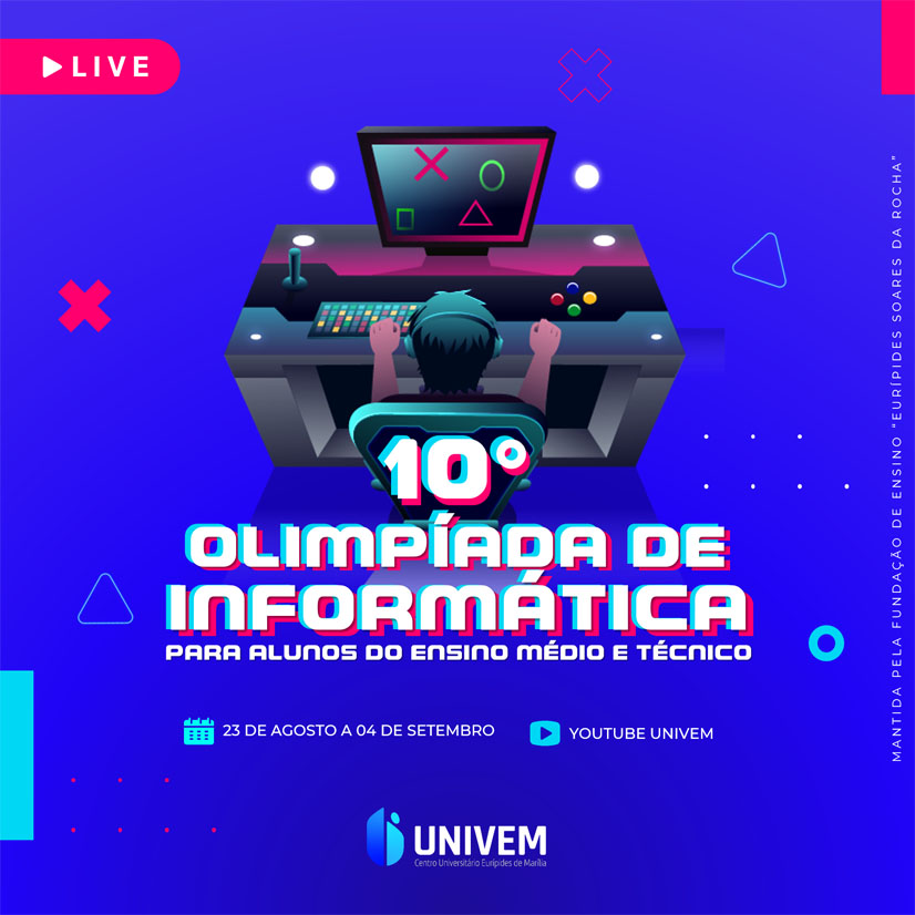 Os cursos de Ciência da Computação e Sistemas de Informação do UNIVEM abrem inscrições para a 10ª Olimpíada de Informática para Alunos do Ensino Médio e técnico.