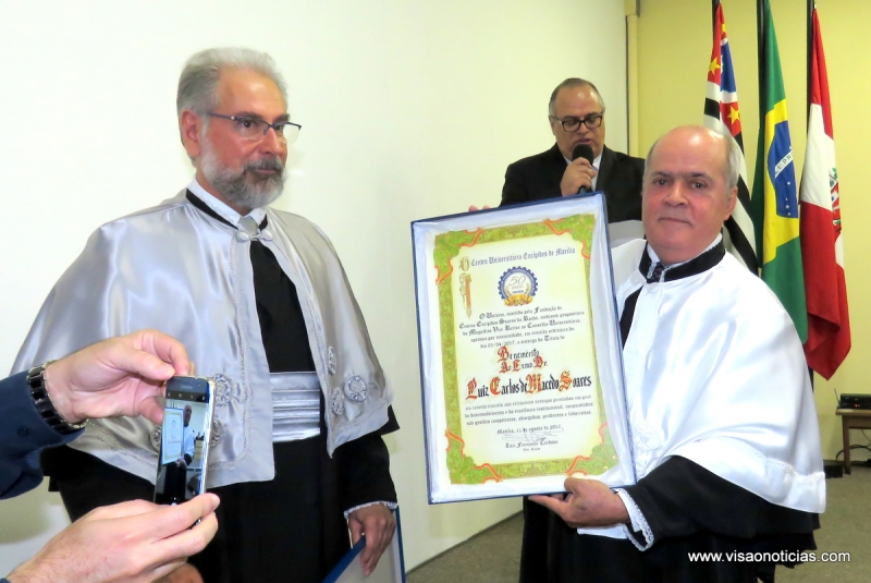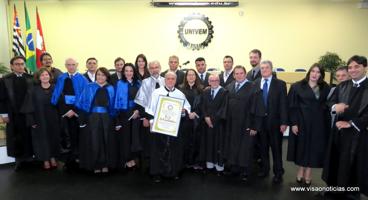 A entrega do título ocorreu no auditório Aniz Badra e reuniu diversas lideranças de Marília, região e até de outros Estados, além de autoridades e familiares. O reitor Luiz Carlos Macedo Soares ficou bastante emocionado pelo título e procurou destacar o trabalho de todos em prol do Univem.