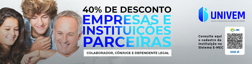 O Univem neste primeiro semestre de 2023 está com uma campanha vigente para funcionários e seus familiares, atuantes em Empresas e Instituições parceiras e conveniadas ao Centro Universitário Eurípides de Marília. A porcentagem de desconto se estende não apenas para funcionários como também cônjuges, filhos e dependentes legais.