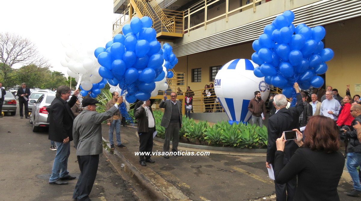 Ao final da solenidade de lançamento, balões com as cores do Univem (azul e branco) coloriam o céu, em Marília.