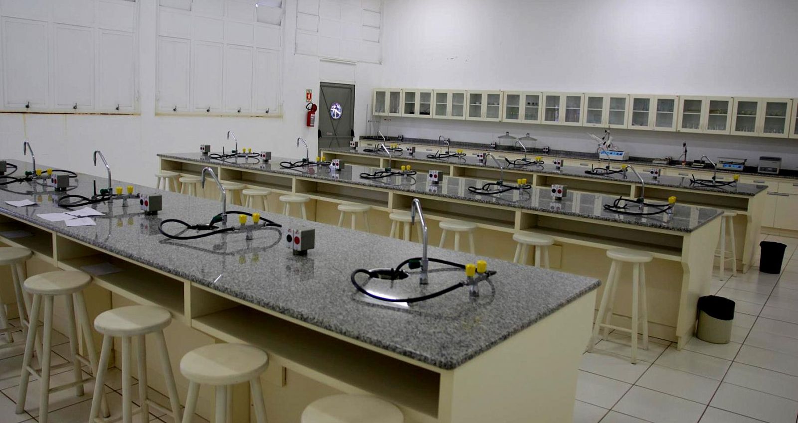 Laboratório de Química do Univem, geralmente utilizado para as aulas práticas do curso de Engenharia de Produção