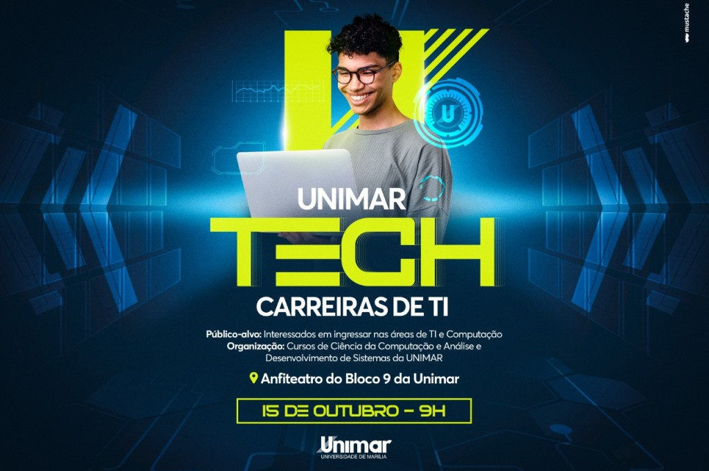 Os cursos de Análise e Desenvolvimento de Informações e Ciência da Computação da Universidade de Marília (Unimar) realizam neste sábado (dia 15), a partir das 9h, no anfiteatro do bloco 9, o Unimar Tech - Carreiras de TI, voltado aos interessados em conhecer mais sobre a carreira no setor de Tecnologia da Informação. O evento é gratuito e aberto à comunidade em geral.