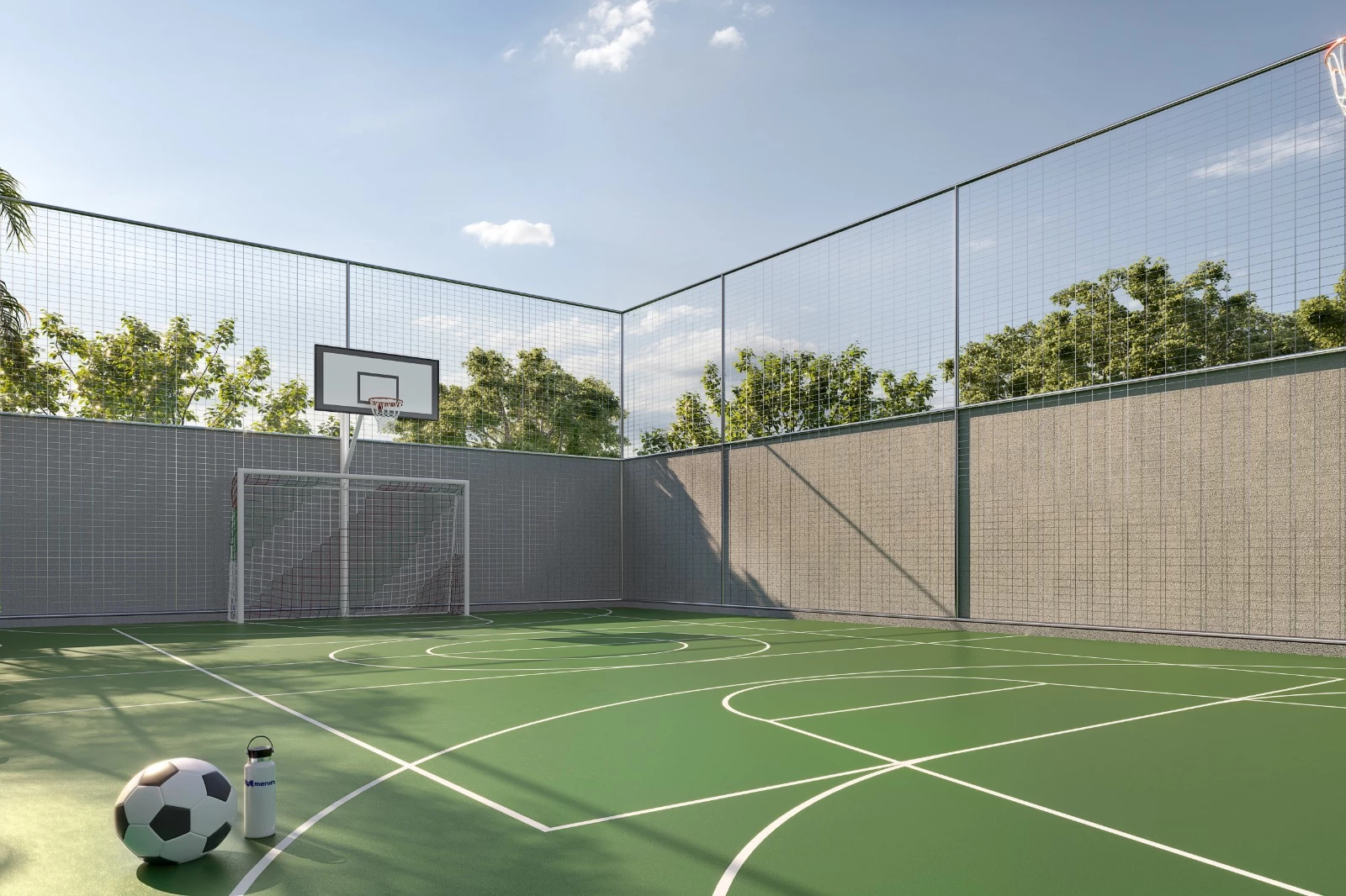 O residencial conta com piscina de raia de tamanho oficial, de 25 metros, além de piscina para adultos, com deck molhado, e piscina infantil. Conta também com quadra poliesportiva, academia fitness, espaço games, “beach tennis” ao ar livre, espaço kids, espaço relax, três praças ao ar livre, espaço Family, solário, playground, churrasqueiras, pet place, bicicletário, horta, lobby, salão de festas e o conceito ultra moderno de mini market.