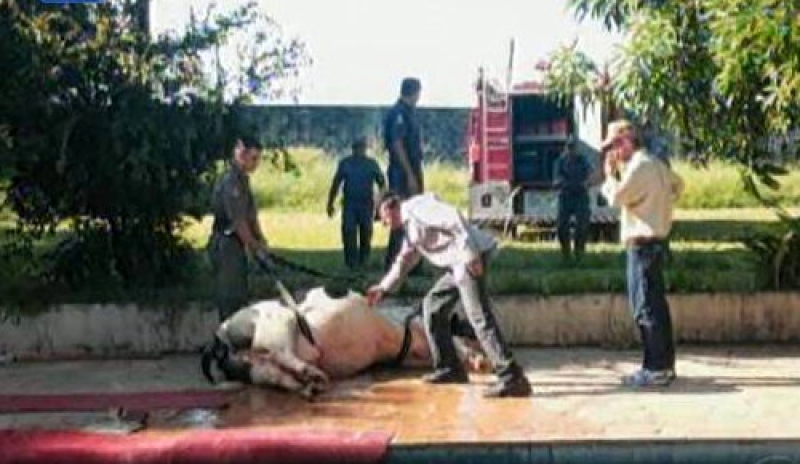 De acordo com informações do proprietário da chácara, ele havia esquecido o portão do pasto aberto, e a vaca resolveu "dar uma volta", quando por motivos ainda não esclarecidos, acabou se desequilibrando e caindo na água.