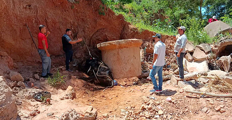 Segundo a pasta municipal, a vaca caiu em uma ribanceira de aproximadamente 10 metros de profundidade após passar por uma cerca.