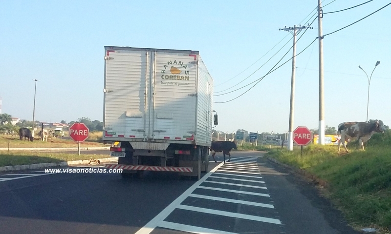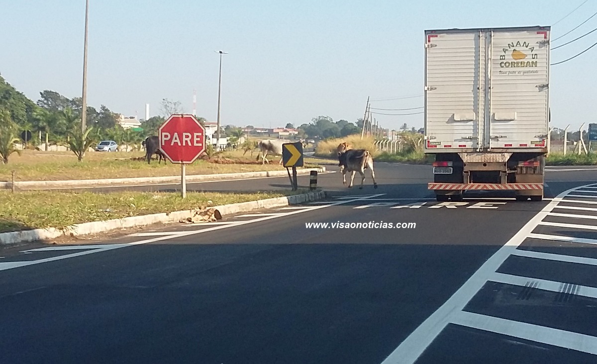 Diversas vacas soltas em plena rodovia colocaram em risco a vida de motoristas hoje em Marília. A confusão ocorreu bem na rotatória existente no acesso ao