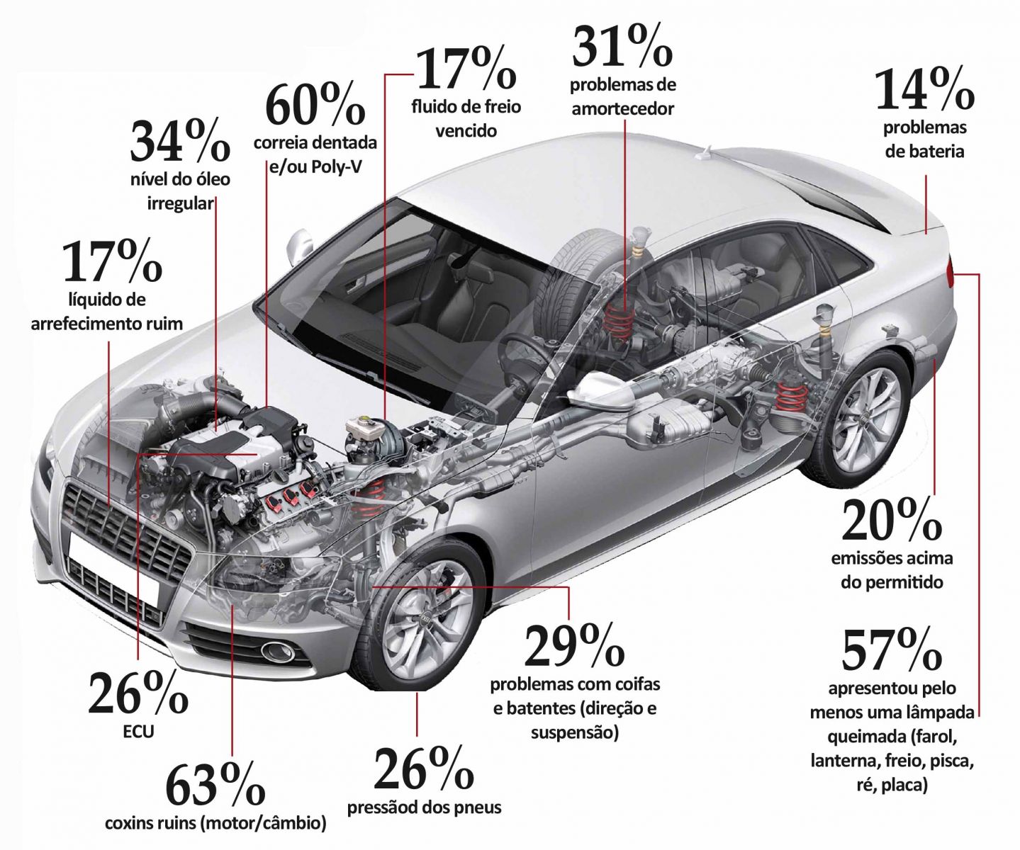 Verifique barulhos na suspensão como batidas secas, rangidos ou ruídos que dão a impressão de algo frouxo. Peças da suspensão sofrem desgastes e necessitam reparos. A falta de manutenção pode comprometer a segurança dos passageiros. Fique atento ao nível do óleo do motor, sua validade e os demais fluidos e filtros. Caso o prazo de troca esteja próximo, recomenda-se antecipar o processo.