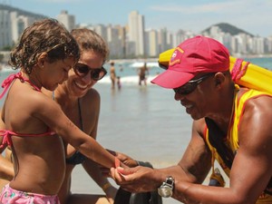 É importante ficar sempre de olho em crianças pois elas se distraem facilmente. É muito fácil de perder. Quando há guarda-vidas na praia, pedir uma pulseirinha de idenitificação.