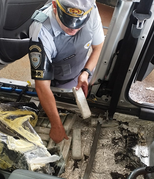 Por mais que os traficantes se esforcem e sejam "criativos" na tentativa de burlar a fiscalização da polícia, no transporte de drogas, nem sempre isso dá certo. Neste domingo, um veículo que havia sido cuidadosamente preparado (havia um fundo falso no assoalho do carro) acabou sendo apreendido pela Polícia Rodoviária Estadual e transportava mais de 137 quilos de cocaína.