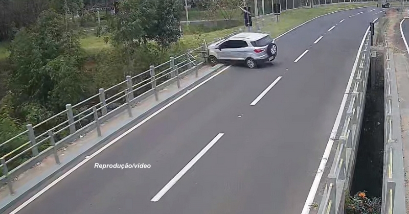 Por muito pouco que um veículo não despencou de um pontilhão que dá acesso ao bairro Distrito Industrial, em Garça. O acidente foi registrado por uma câmera de segurança e deixou a condutora ferida.