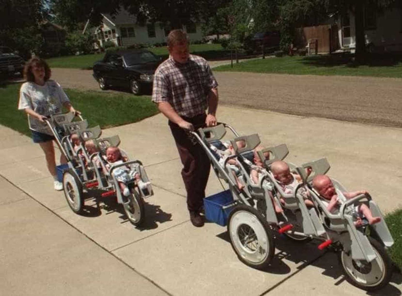 Nos anos 1990, Bobbie McCaughey e seu marido fizeram uma fertilização in vitro para realizarem os sonho de serem pais. Eles só não imaginavam que o procedimento daria resultado a sete bebês. Isso mesmo, sete! Em 1997, nasceram Kenny, Kelsey, Natalie, Brandon, Alexis, Nathan e Joel.