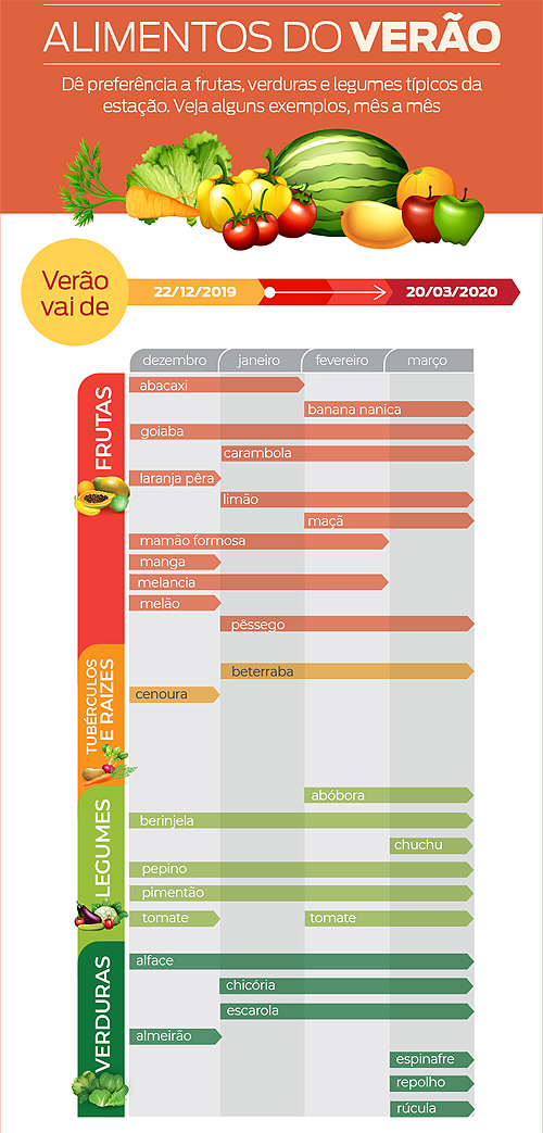 Abaixo, veja também um infográfico que traz outras sugestões de legumes, além de verduras e frutas típicas do verão.