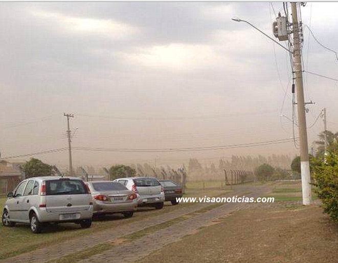 A estiagem prolongada traz uma preocupação: o risco da chuva chegar em forma de tempestade. Neste domingo foi registrado vendaval em algumas regiões, levantando uma grande nuvem de poeira. Prosseguiu durante a noite.