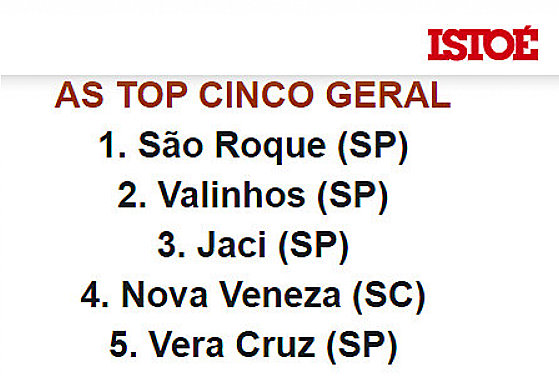 O fato da cidade de Vera Cruz ter sido classificada entre as cinco melhores do país no quesito saúde (de acordo com a revista Isto É), é devido ao trabalho sério que vem sendo realizado pela administração do prefeito Davoli que envolve equipes em todas as áreas.