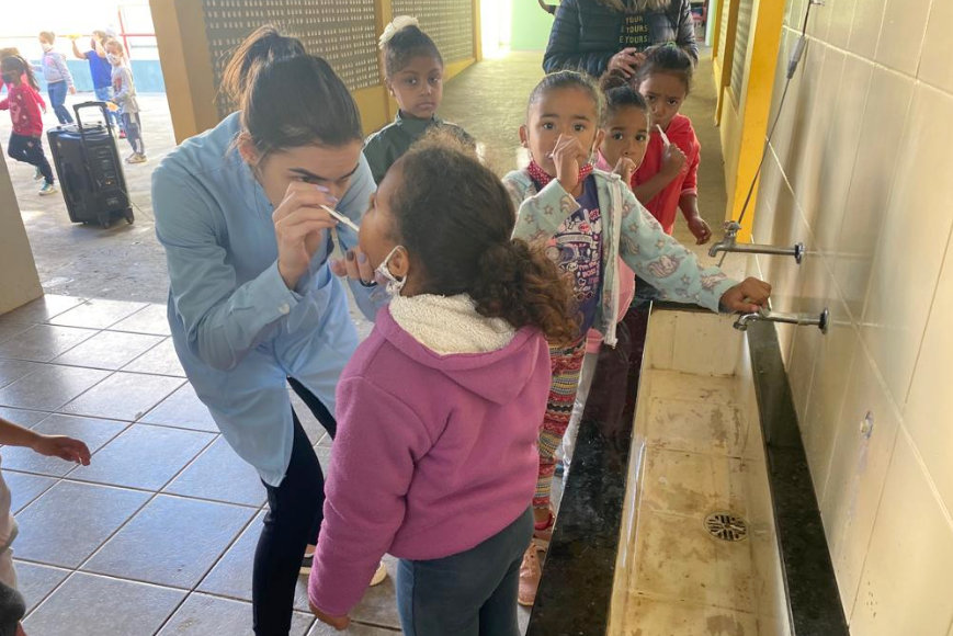 No primeiro caso, as equipes percorrem as escolas quatro vezes por semana, realizando exame clínico e de orientação aos alunos sobre a importância da escovação (é feita na unidade inclusive com aplicação de fluor), como forma de prevenir cáries e outras doenças da boca. Se for necessário, o aluno é encaminhado ao atendimento odontológico.