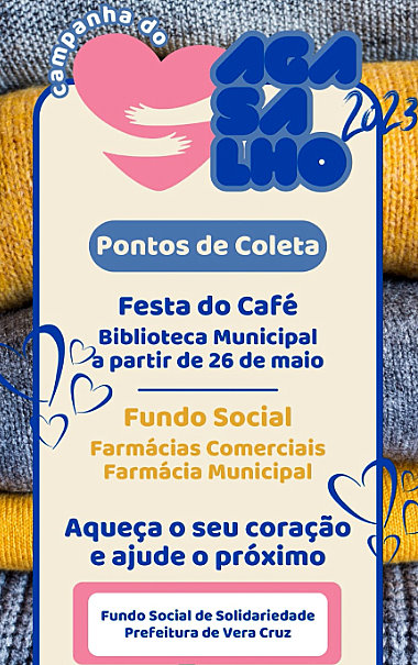 As doações poderão ser feitas na Biblioteca Municipal, Fundo Social de Solidariedade, farmácias comerciais e na farmácia municipal de Vera Cruz. Mais informações pelo telefone (14) 3492- 3595.