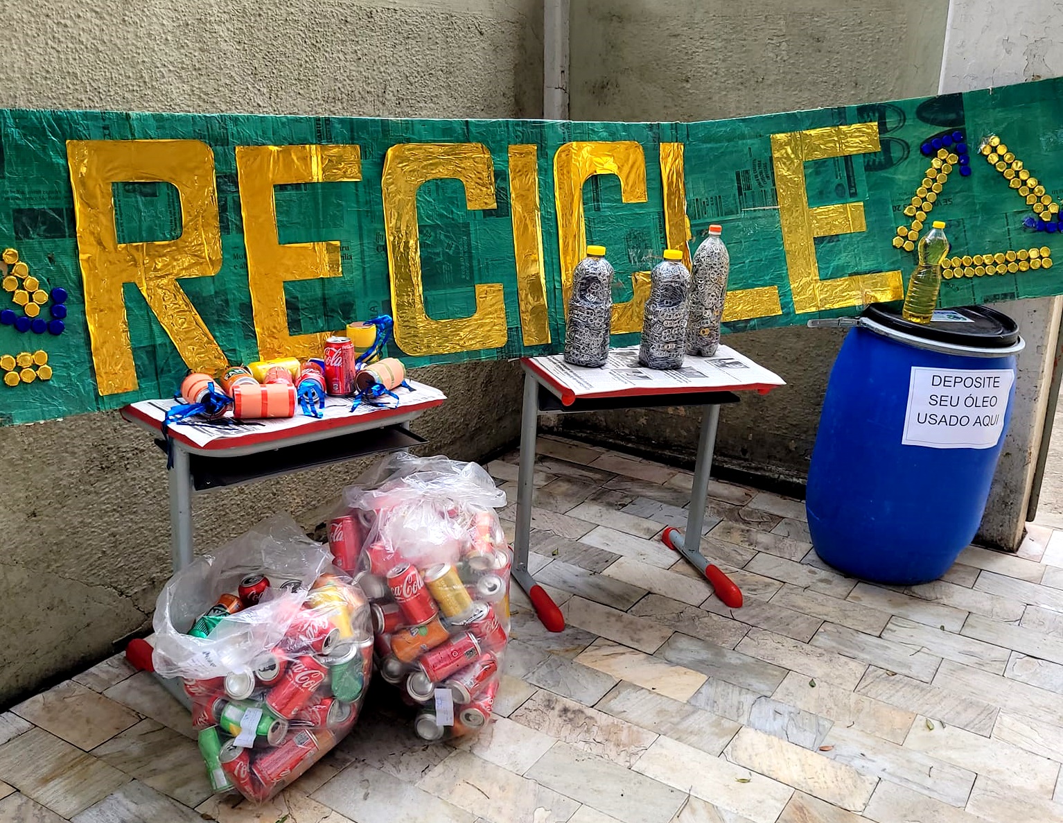 É o caso, por exemplo, da EMEF Prof. Antonio Andrade Guimarães ("Totó" - foto) que realizou uma exposição com os resultados da campanha da reciclagem realizada.