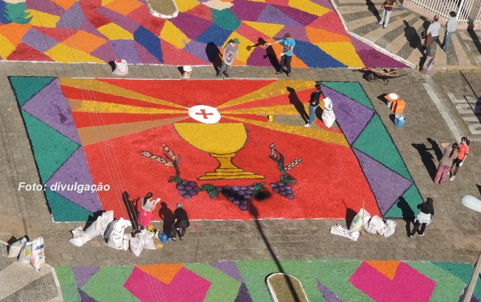As ruas são enfeitadas desde 1937, formando grandes tapetes coloridos para a passagem do Corpo de Cristo. O trabalho conta com o envolvimento das pastorais, grupos da Paróquia, Comunidade São José, comércio e comunidade.