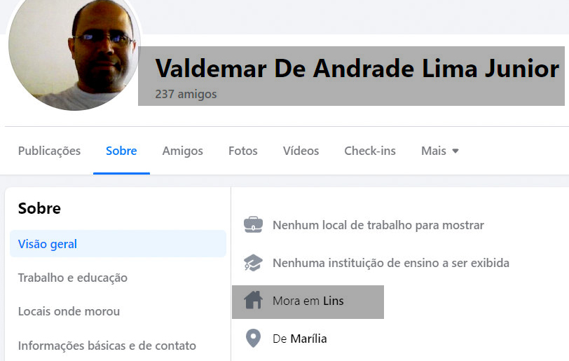 Curiosamente, ao pesquisar o nome dele nas redes sociais (Facebook), um pefil dele aparece como que "mora em Lins".