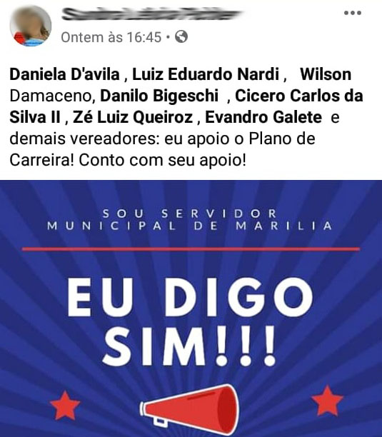 Pelas redes sociais, servidores pressionam os vereadores para votar o plano