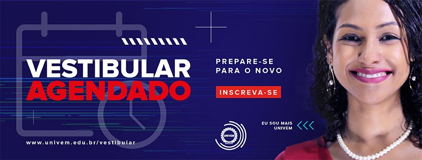 O UNIVEM já está com inscrições abertas para o Vestibular Agendado 2020, com várias opções de data para os vestibulandos. Agora com novos cursos: Ciência de Dados, Engenharia da Computação, Engenharia de Alimentos, Engenharia de Biotecnologia, Produção Industrial, Nutrição, Design de Mídias Digitais e Publicidade e Propaganda.