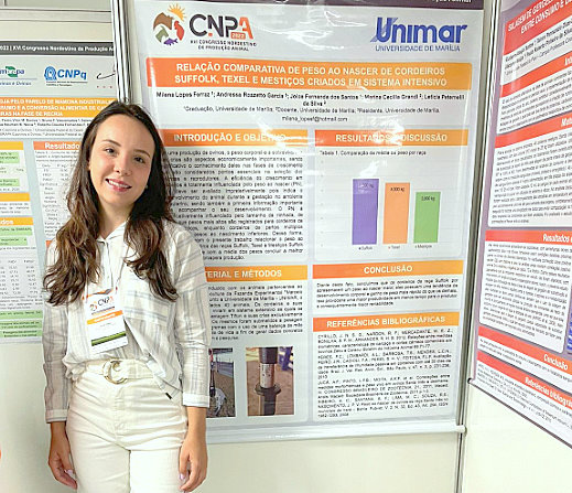 Foram sete trabalhos apresentados e seis acadêmicas, sendo três de graduandas e três de pós-graduandas, e todas as pesquisas desenvolvidas na Fazenda Experimental da Unimar, tanto em ovinos quanto em bovinos.