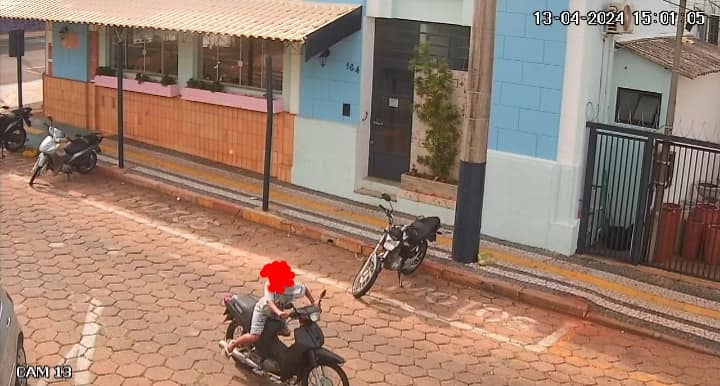 O caso aconteceu no último fim de semana. Nas imagens é possível ver o momento em que a criança se aproxima da motocicleta, modelo Biz, estacionada ao lado de uma pizzaria e que, ao que tudo indica, estava com a chave no contato.