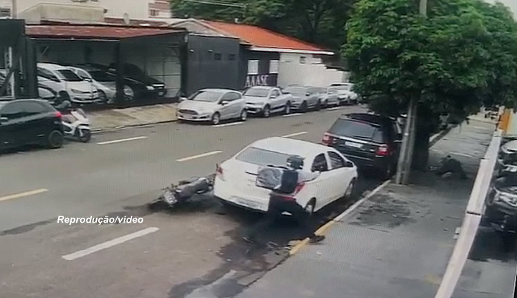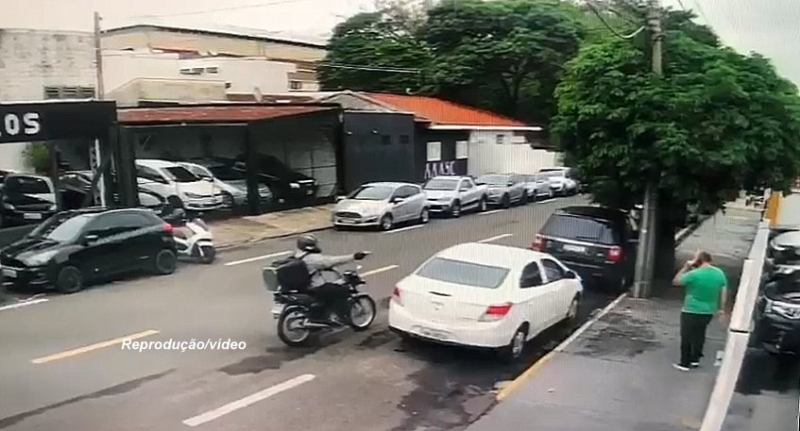 De acordo com as imagens, o atirador chegou em uma moto com uma mochila de entregador nas costas. Ele mira na vítima que estava andando pela calçada falando ao celular, sem perceber a chegada do executor que começa a atirar ainda em cima da motocicleta.